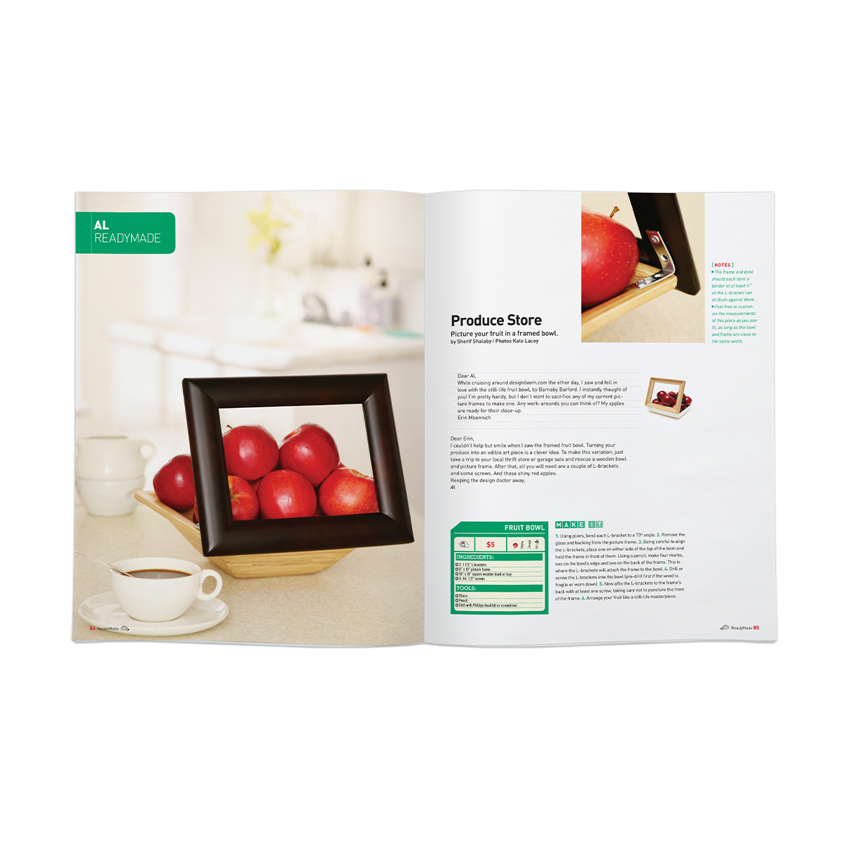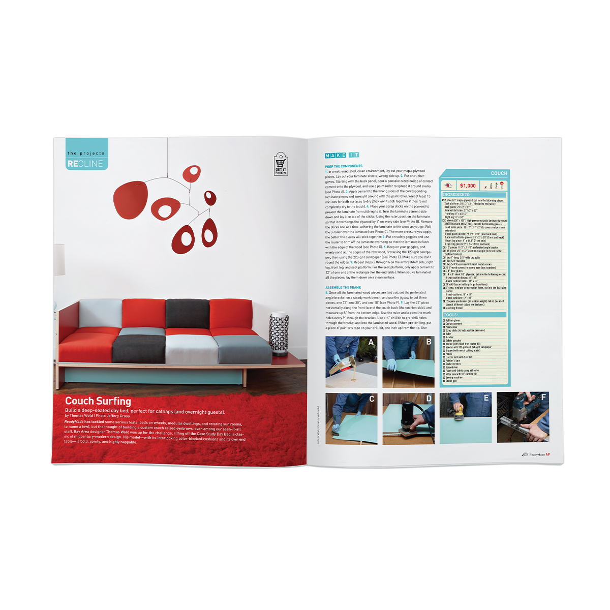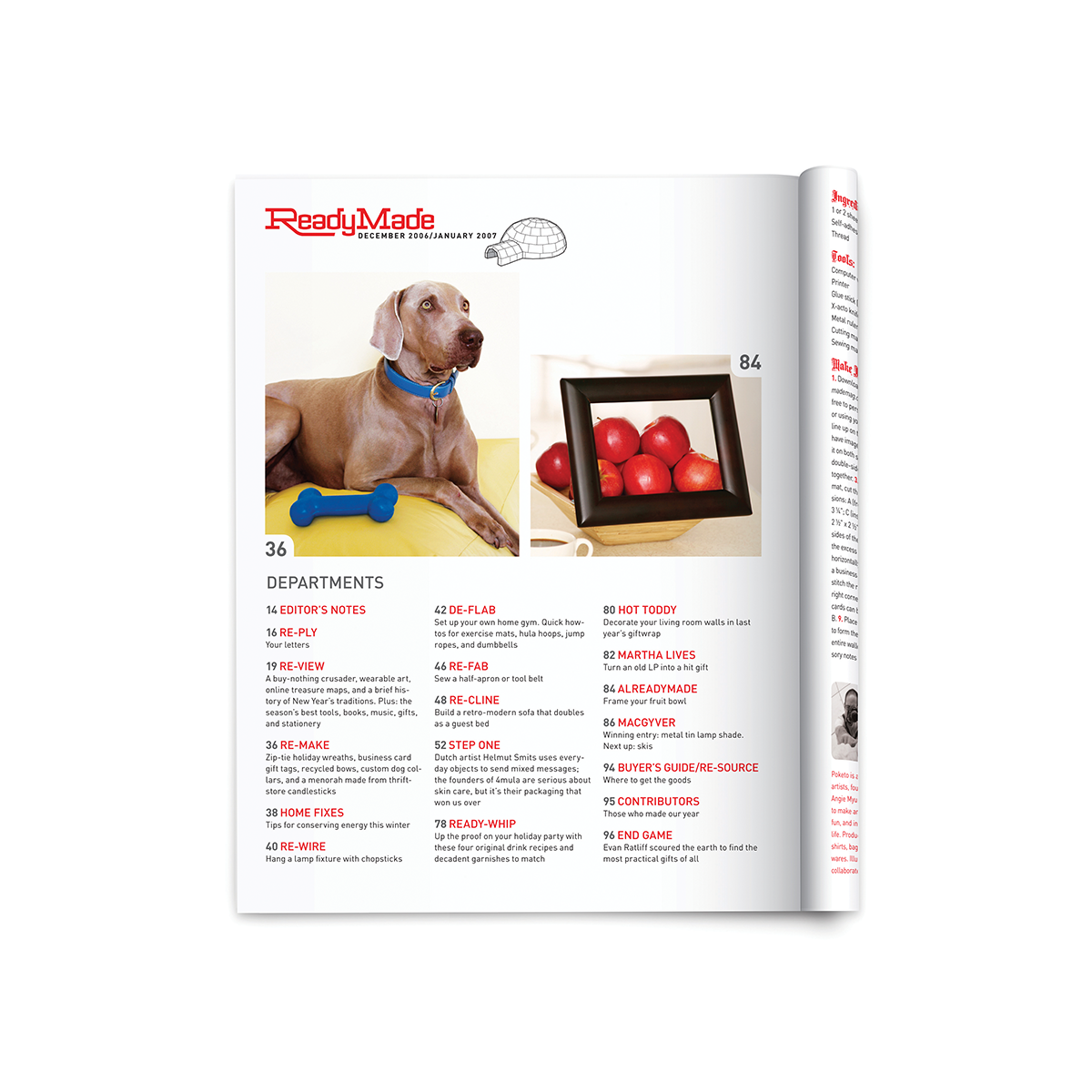 The concept was bold: let’s stop thinking of this as just a magazine and instead design it as an interactive workbook. DIY projects would be treated like recipes, with the goal that, by the end of the month, if readers completed every project, nothing would remain of the magazine but scraps and tatters. While we didn’t fully achieve that vision, we succeeded in evolving Readymade into a far more interactive and engaging experience.